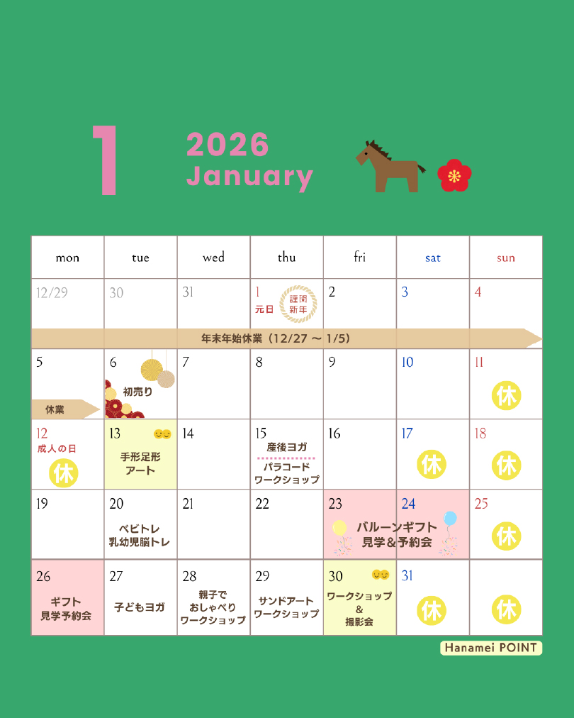 1月営業日のお知らせNew!!